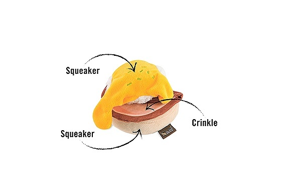 Pluszowa zabawka dla psa - mała kanapka z jajkiem po benedyktyńsku z kolekcji Barking Brunch Mini.