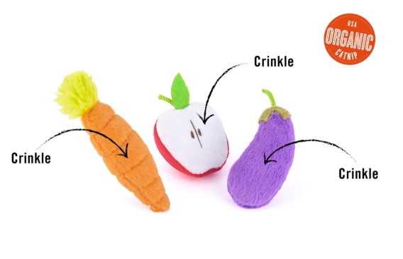 Pluszowa zabawka dla kota z kocimiętką - jabłko, marchew i bakłażan z kolekcji Feline Frenzy.